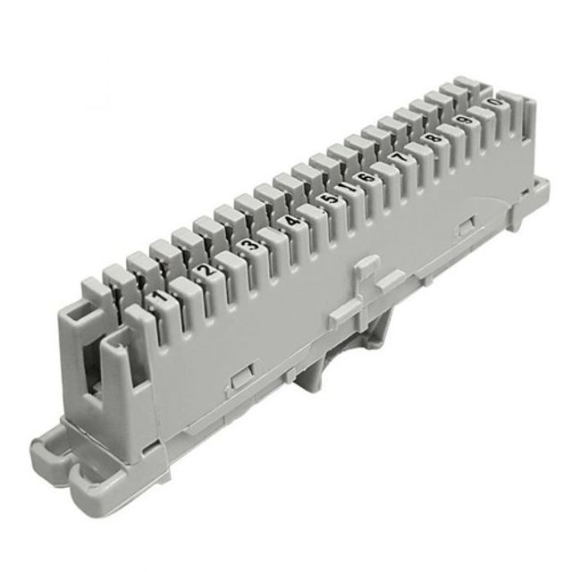 01 Bloco De engate rápido e 01 Suporte ou Bastidore para 1 Bloco. O bloco de engate rápido M10 é usado para realizar a interface dos cabos externos e internos, podendo ser utilizados em armários de distribuição, caixas prediais e distribuidores gerais de centrais telefônicas. Podem ser montados em bastidores com várias capacidades (aço inoxidável, parede ou perfil tubular). Característica do Bloco Bloco Engate Rápido M10 para telefonia 1 peça de 10 pares engate rápido Composição : Plástico, metais, Estanho. Os blocos de telefonia por sua vez são permitindo a organização da Instalação telefônica.