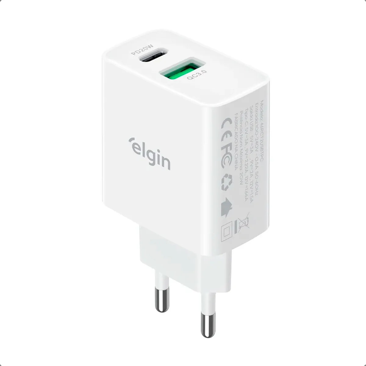 Carregador Tomada 20w 2 Saídas Usb + Tipo C - Elgin