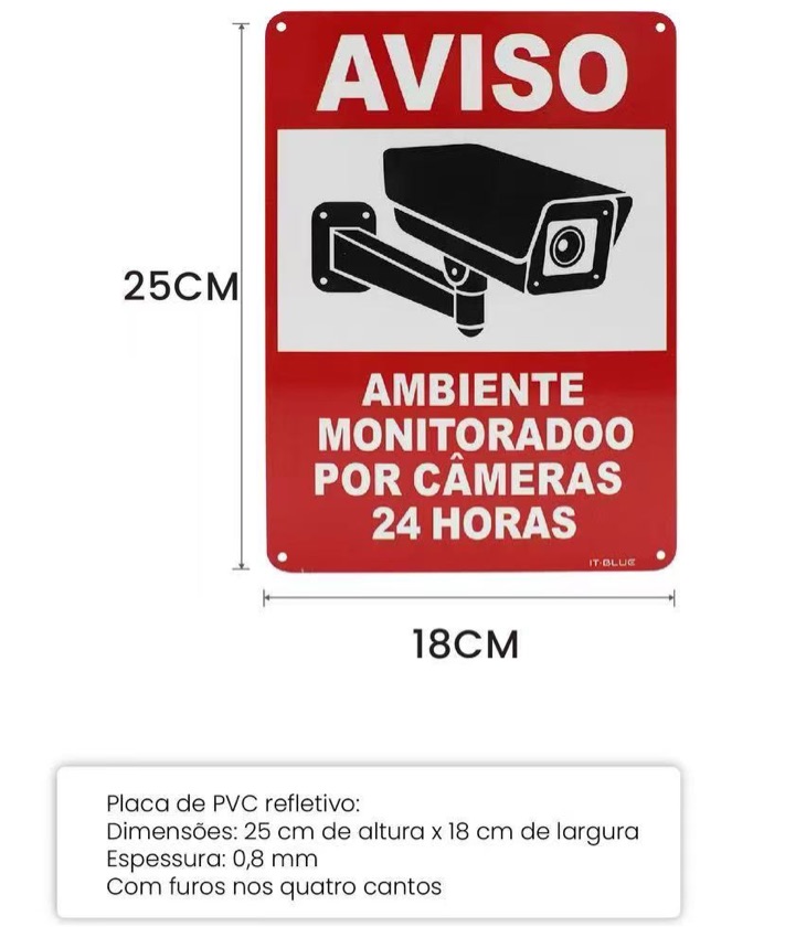 Placa de aviso (câmera) PVA vermelho externa 1255-P